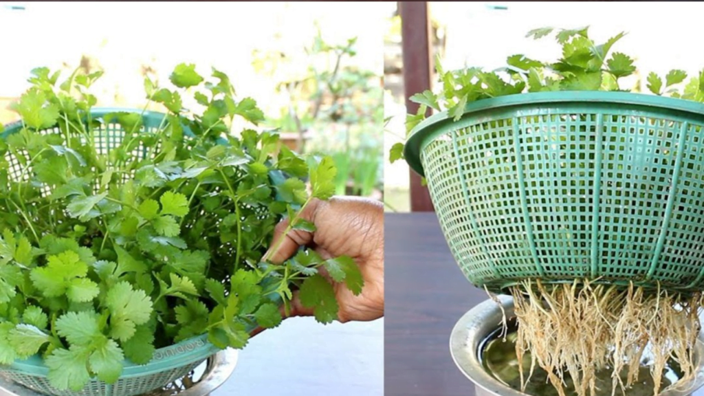 Cultivo de coentro em água em casa