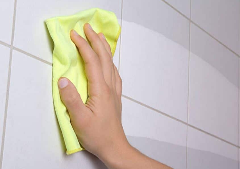3) Molhe uma esponja ou esfregão com essa preparação e limpe. Em seguida, enxágue a parede com água e o piso com um esfregão limpo.